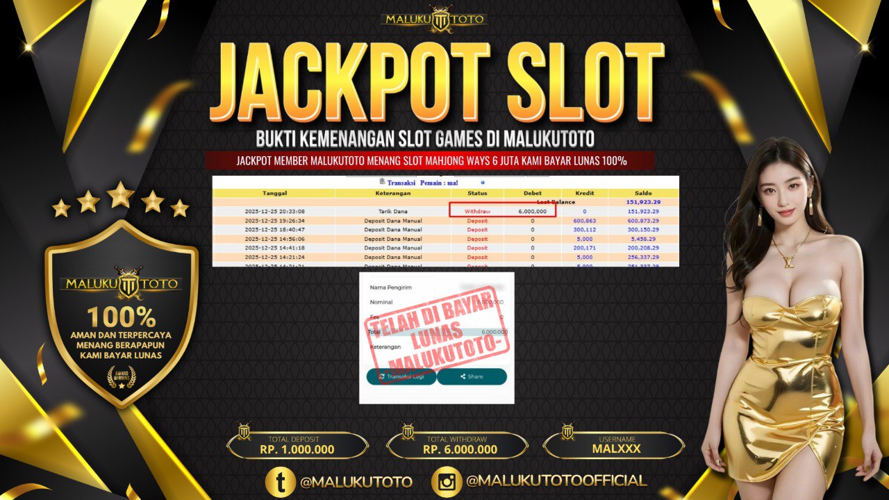 Bandar togel MALUKUTOTO merupakan bandar togel dan slot online yang membayar semua kemenangan member hingga lunas. Setiap pembayaran pada situs kami dilakukan dengan cara transfer ke rekening tujuan yang sudah di daftarkan pada situs togel online kami, Pembayaran hanya dapat di proses jika rekening yang di daftarkan telah valid dan dapat di transfer. Semua kemenangan member yang mendapatkan hadiah jackpot terbesar akan kami posting agar semua pemain dapat melihat bandar situs terpercaya MALUKUTOTO ini membayar semua kemenangan member hingga lunas. Setiap postingan yang kami posting akan kami lakukan sensor pada nomor rekening 4 digit dan nama rekening untuk menjaga privasi dan kerahasiaan member. Postingan Jackpot yang kami posting agar member atau pemain yang belum pernah bermain bisa melihat bandar togel Bukan Kaleng Kaleng Seperti MALUKUTOTO ini, Semua postingan jackpot yang kami posting dapat di lihat data keasliannya melalui nomor reff yang di tunjukan pada bank atau mbanking saat kita melakukan transfer.