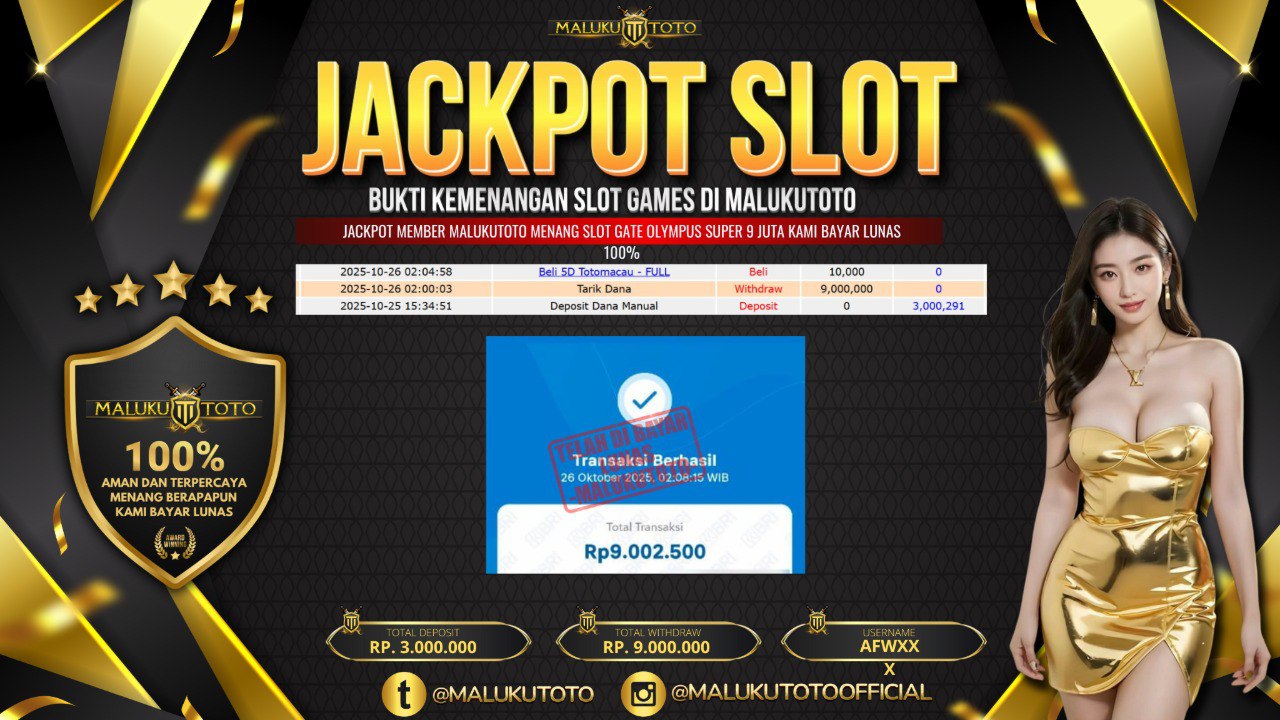Selamat kepada User id : AFW*** Telah berhasil mendapatkan kemenangan besar pada permainan SLOT GATE OLYMPUS SUPER kemenangan Sebesar Rp.9,000,000, Setelah mengisi formulir withdraw dengan kurung waktu hanya 3 – 5 menit pihak malukutoto sudah melakukan transfer kepada pemilik Userid dan dana sudah dapat di cairkan oleh pemenang. Bukti pembayaran yang kami berikan merupakan bukti pembayaran yang SAH / VALID yang langung di dapatkan melaui tanda transfer transaksi dari Bank yang di tuju.