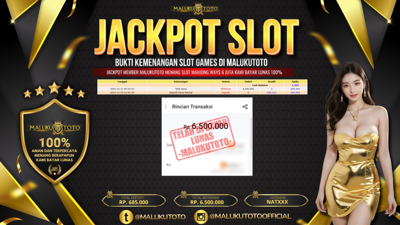 Selamat kepada User id : NAT** Telah berhasil mendapatkan kemenangan besar pada permainan SLOT MAJHONG WAYS kemenangan Sebesar Rp. 6.500.000, Setelah mengisi formulir withdraw dengan kurung waktu hanya 3 – 5 menit pihak malukutoto sudah melakukan transfer kepada pemilik Userid dan dana sudah dapat di cairkan oleh pemenang. Bukti pembayaran yang kami berikan merupakan bukti pembayaran yang SAH / VALID yang langung di dapatkan melaui tanda transfer transaksi dari Bank yang di tuju.